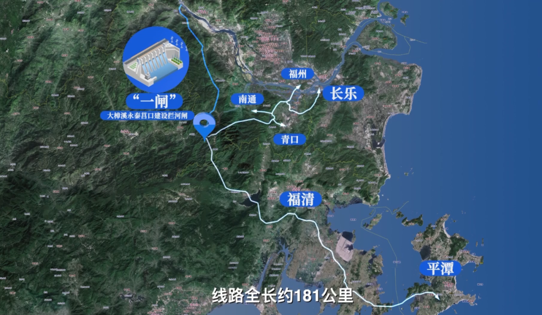 “一闸三线”供水工程全长约181.58公里,工程分设福州段和平潭段。其中,平潭段由海坛海峡跨海管道、金井湾管道、天岭隧洞3个部分组成,总投资7.04亿元,线路总长约13.55千米。