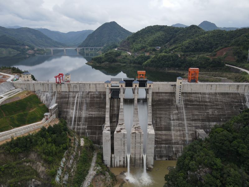 为确保度汛安全及满足生态下泄流量要求,6月6日,罗源霍口水库工程下闸蓄水后溢洪道首次开闸泄流,出库流量约21m³/s。截至目前,水库上游水位达174.1m,库容达15400万m³。