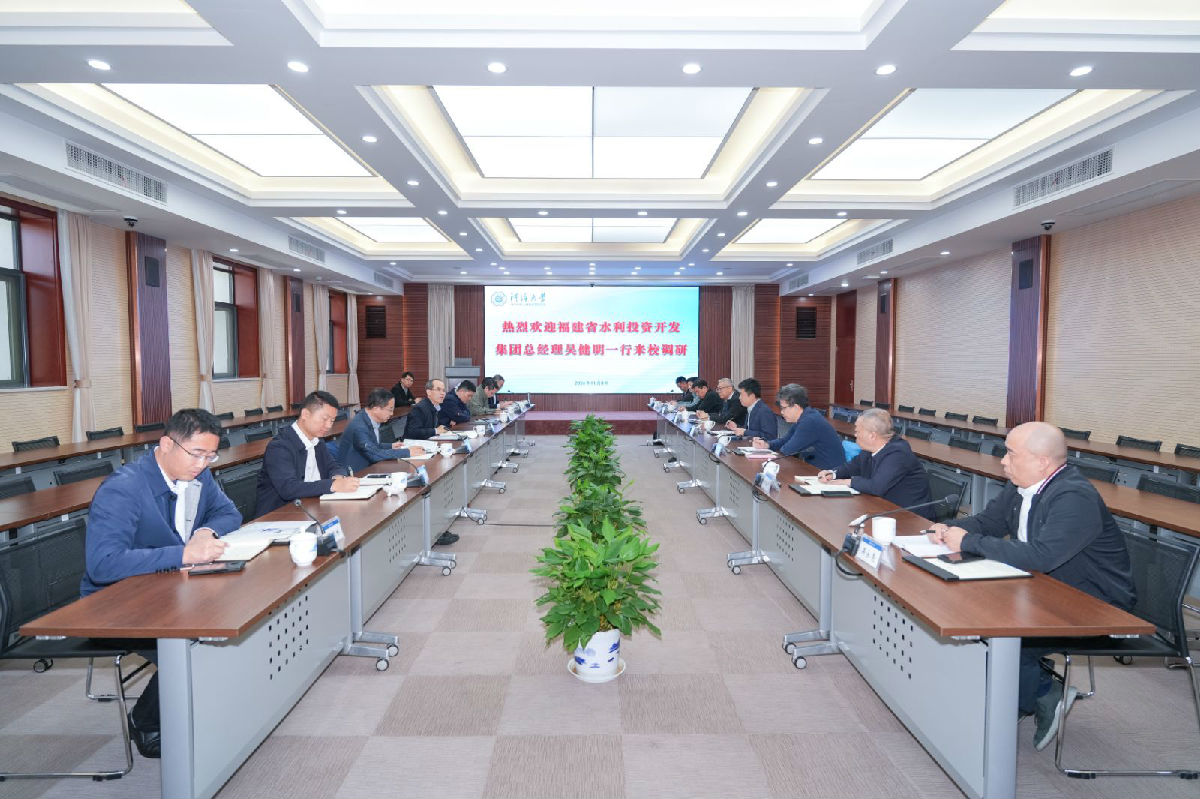 在河海大学考察期间,吴健明总经理与河海大学郑金海校长座谈交流。郑金海校长介绍河海大学建校史、特色学科以及科研平台建设等情况,吴健明总经理介绍集团公司改革发展情况以及未来发展重点,指出集团公司肩负着推动福建水利水务产业高质量发展的使命,对科技创新、高端人才有着迫切的需求,希望借助河海大学涉水行业综合优势,加强科研、人才等领域合作。双方就依托项目带科研,与河海大学共同搭建“产学研”合作平台,加强涉水“四新”研究、数字孪生水利、人才培养等领域达成初步合作意向。