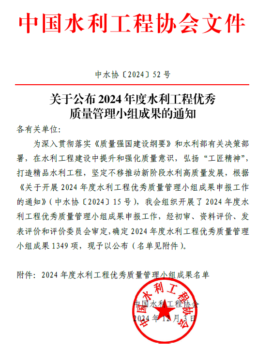 近年来,工程局公司深入贯彻落实《质量强国建设纲要》和水利部有关部署要求,在工程建设中强化质量意识,围绕施工中重难点问题开展QC小组质量提升攻关活动,着力提升公司整体质量管理水平,推动企业高质量发展。