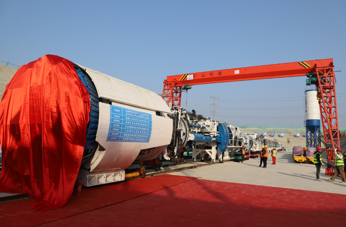 江阴输水管道工程隧洞总长约7.6公里,地质构造错综复杂,岩体较为破碎,且存在长距离、高压强、断裂极度发育以及涌水等难题。为提高隧道施工效率、施工质量以及安全水平,工程局公司联合唐兴科技组建跨学科攻坚团队,深入剖析工程难点痛点,历经数次方案论证、模拟推演与技术优化,为工程隧洞开挖量身制造“福水号”TBM掘进机。该设备集机械、电子、液压、激光导向、自动控制等先进技术为一体,组装总长可达220米,刀盘直径4.33米,最大推力11628KN,适用于复杂地理地貌和深埋长隧洞施工。相较于传统爆破法,“福水号”TBM掘进速度更快、精准系数更高、安全性能更强,有利于缩短工期,减少对环境的影响。