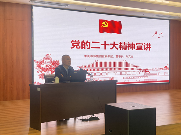 刘文忠结合水务工作实际,紧扣党的二十大精神,围绕深刻领会和把握党的二十大的主题和主要成果、过去5年工作和新时代10年伟大变革、马克思主义中国化时代化新境界、新时代新征程中国共产党的使命任务、全面建设社会主义现代化国家的重大部署、党总结出的规律性认识和团结奋斗的时代要求等6个方面,深入阐释了党的二十大的核心要义和丰富内涵。