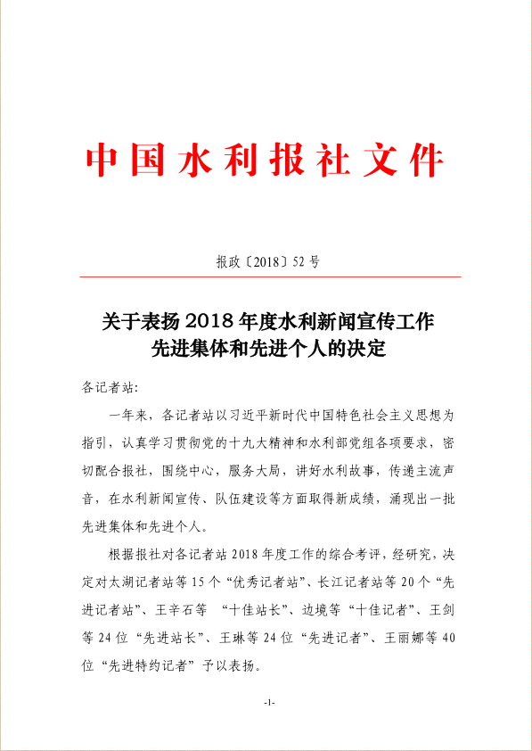 近日,中国水利报社通报表扬2018年度水利新闻宣传工作先进集体和先进个人,我省水利新闻宣传工作获多项荣誉,集团公司一名新闻信息宣传负责同志被评为“先进特约记者”。